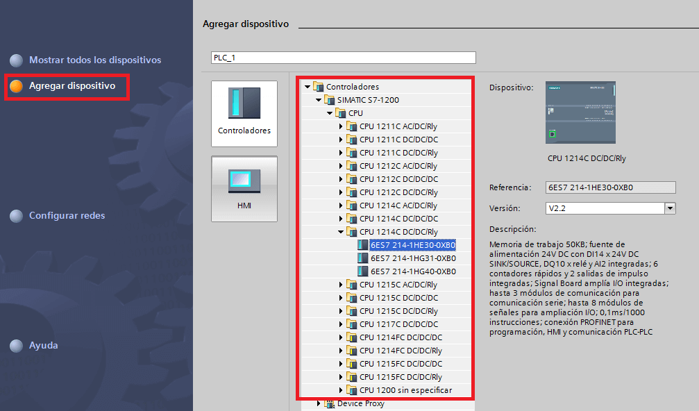 Configure a Device → CPU 1214C DC/DC/DC
